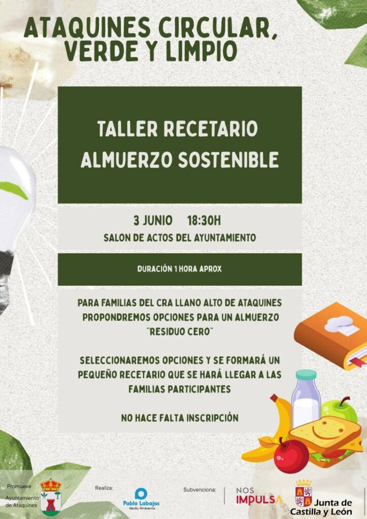 馃摙馃憠ATAQUINES: Programa Ataquines Circular, verde y limpio. Mayo – Junio 2025. Taller de Cocina. Martes 3 de Junio, 18:30 h