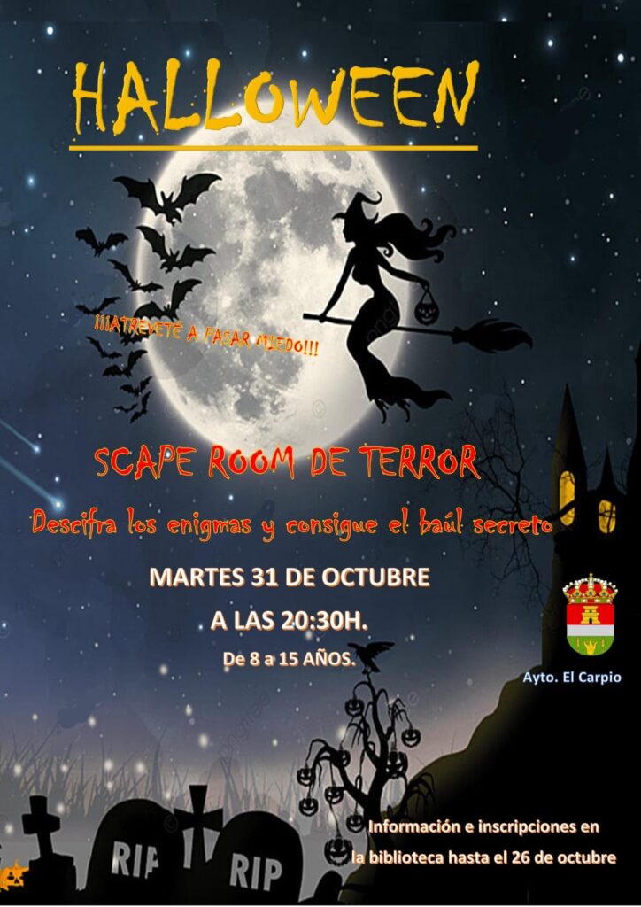 馃摙馃憠EL CARPIO: Fiesta Halloween 2023: Scape Room de Terror. Martes 31 de Octubre, 20:30 h