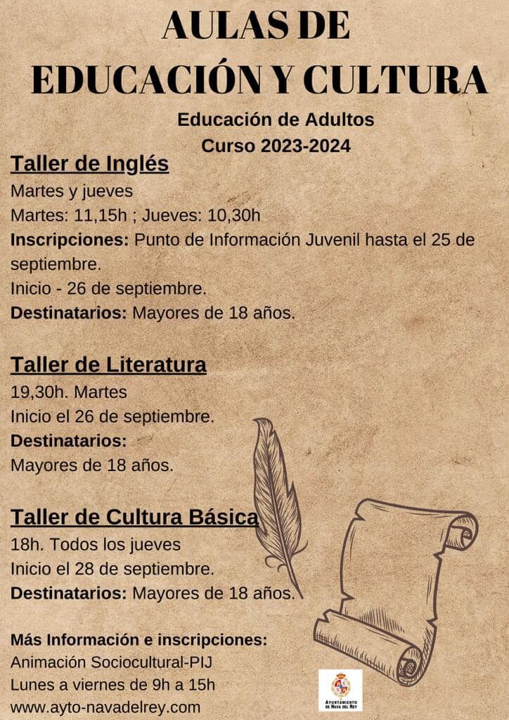 馃摙馃憠NAVA DEL REY: Aulas de Educaci贸n y Cultura. Curso 2023-24