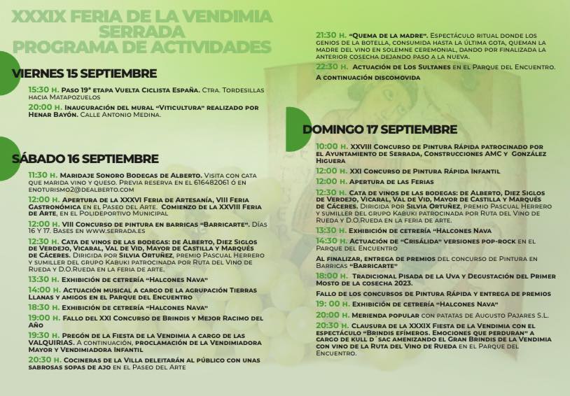 馃摙馃憠SERRADA: XXXIX Fiesta de la Vendimia. 15 al 17 de Septiembre