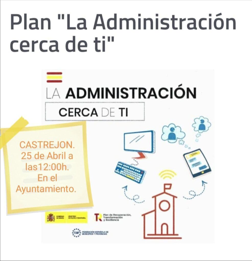 馃摙馃憠CASTREJ脫N DE TRABANCOS: Plan: La Administraci贸n cerca de ti. Jueves 25 de Abril, 12 h