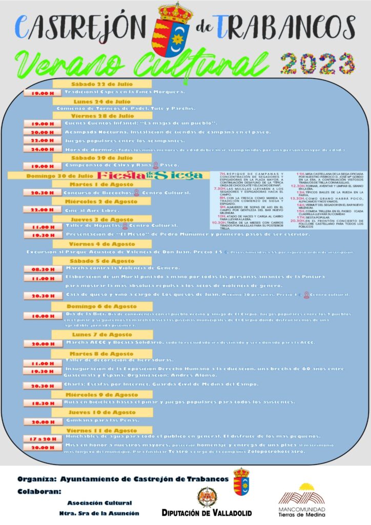 馃摙馃憠CASTREJ脫N DE TRABANCOS: Verano Cultural 2023. 22 de Julio al 11 de Agosto
