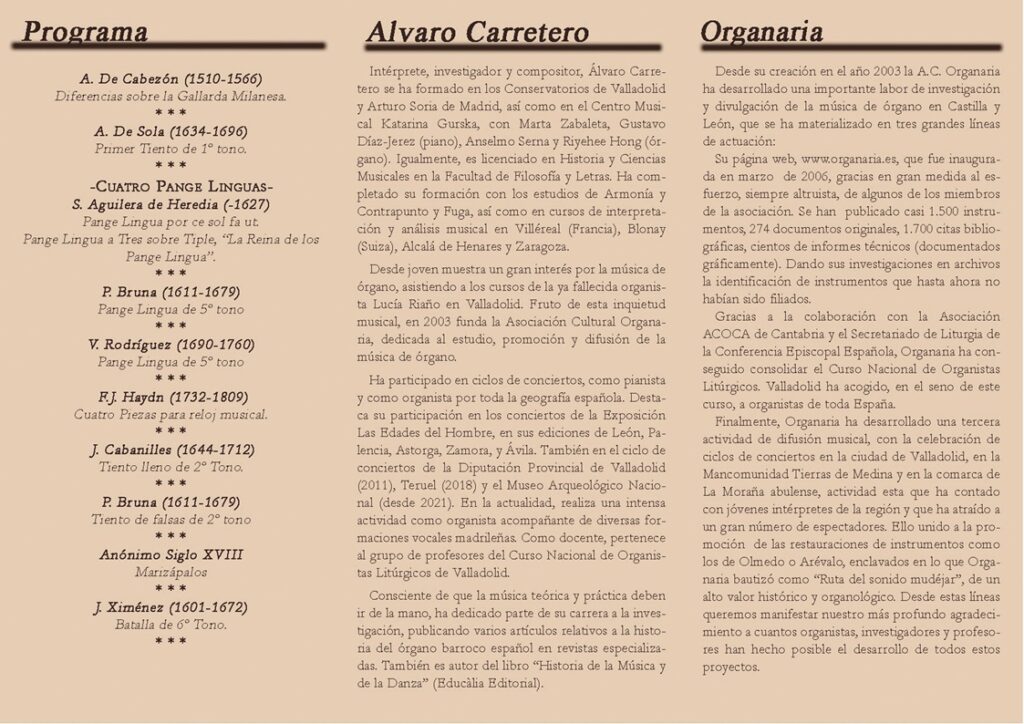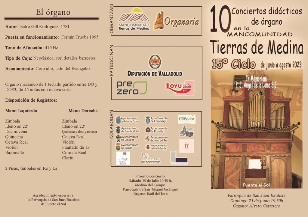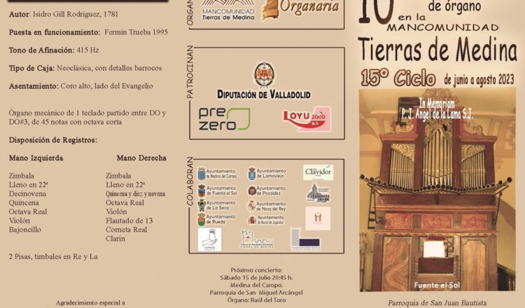 #Ciclo #Conciertos #Órgano #Música #Cultura #Patrimonio #FuenteelSol #Lomoviejo #LaSeca #MedinadelCampo #MurieldeZapardiel #NavadelRey #Pozaldez #Rueda #TierrasdeMedina