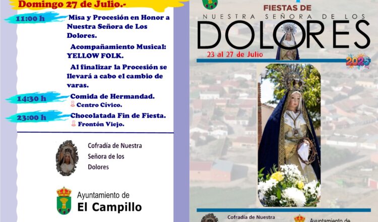 馃摙馃憠EL CAMPILLO: Fiestas de Nuestra Se帽ora de los Dolores 2025. 23 al 27 de Julio
