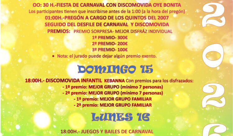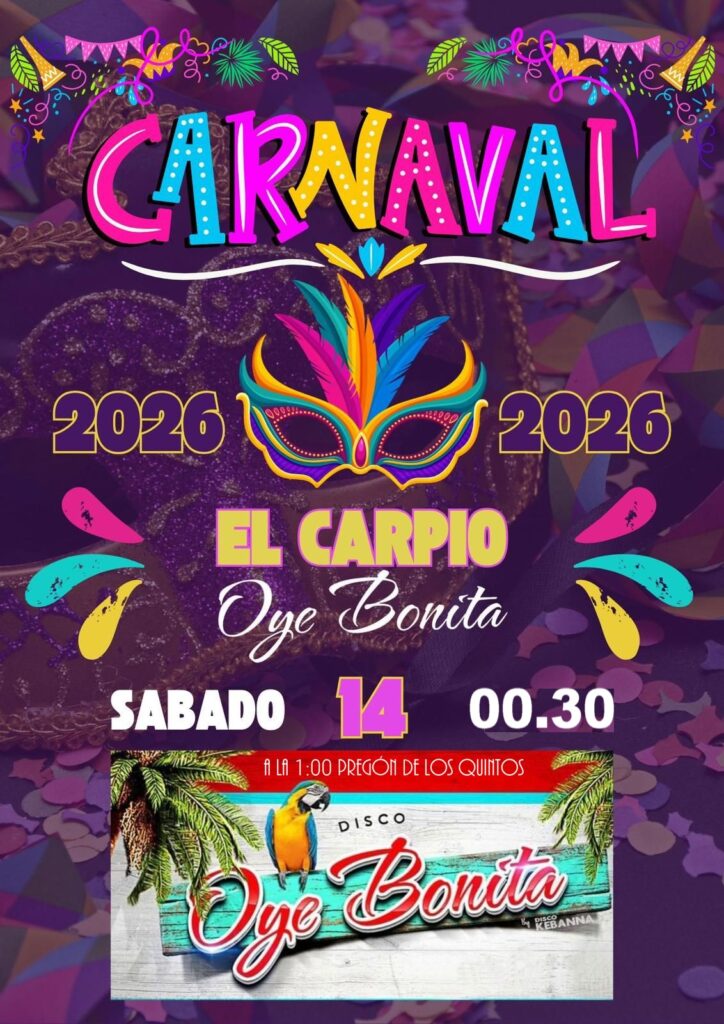 馃摙馃憠EL CARPIO: Carnaval 2026. 14 al 16 de Febrero