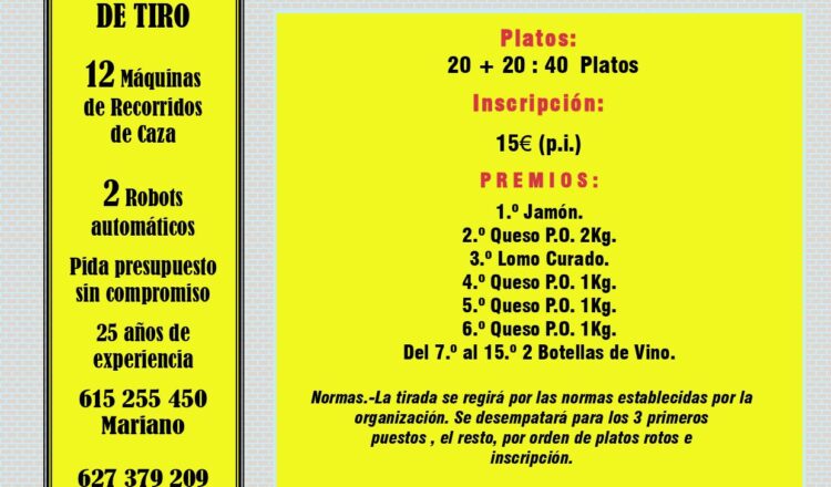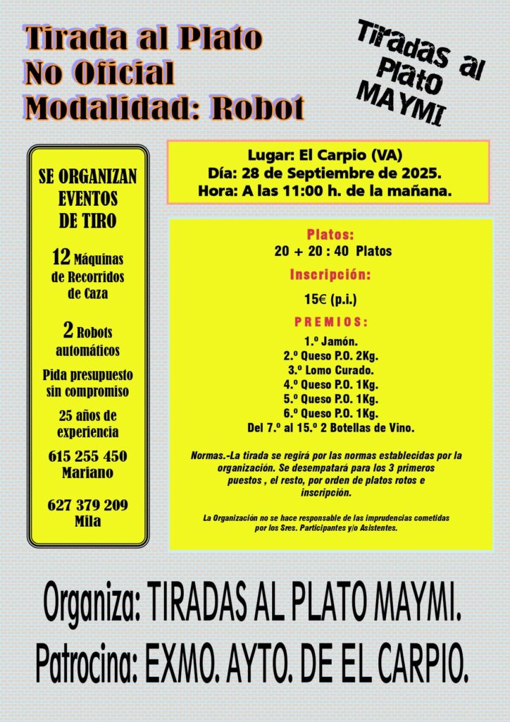 馃摙馃憠EL CARPIO: Tirada al Plato. Domingo 28 de Septiembre, 11 h