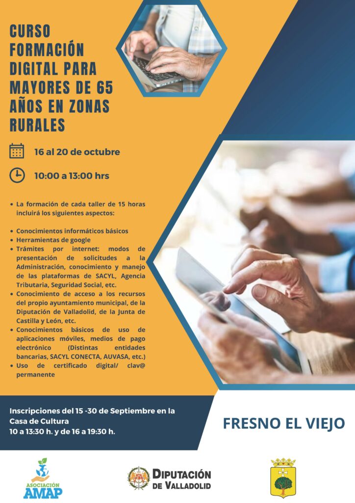 馃摙馃憠FRESNO EL VIEJO: Curso: Formaci贸n Digital para mayores de 65 a帽os en zonas rurales. 16 al 20 de Octubre