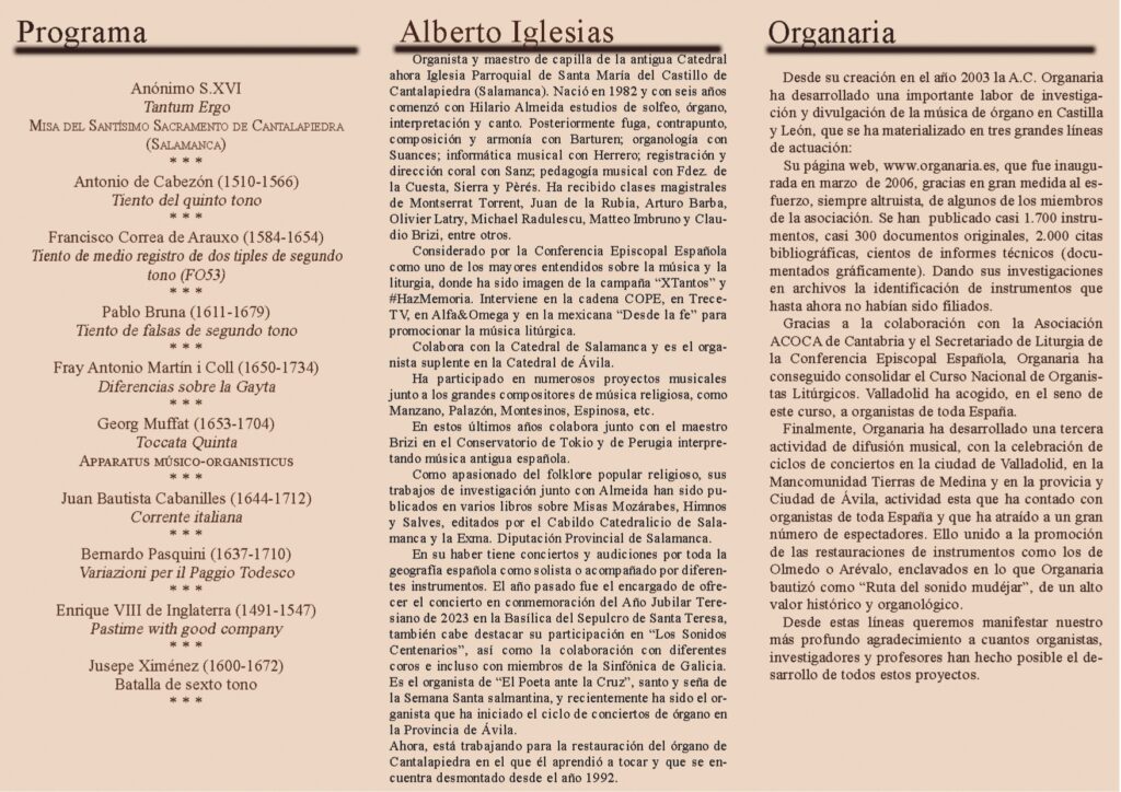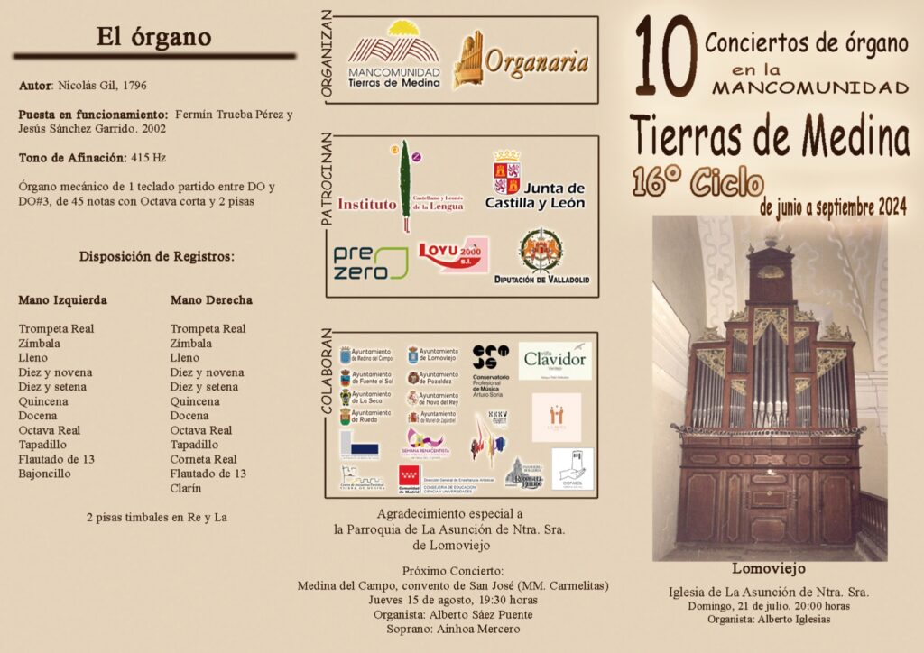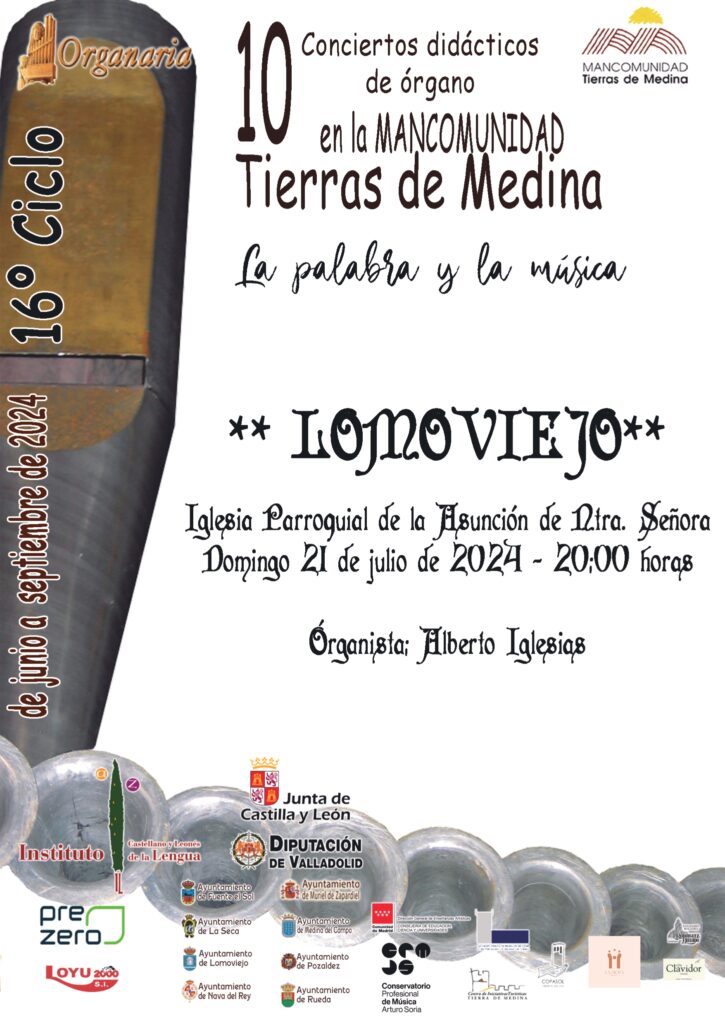 📢👉LOMOVIEJO: XVI Ciclo de Conciertos Didácticos de Órgano en la Mancomunidad Tierras de Medina. La palabra y la música. Organista Alberto Iglesias. Domingo 21 de Julio, 20 h