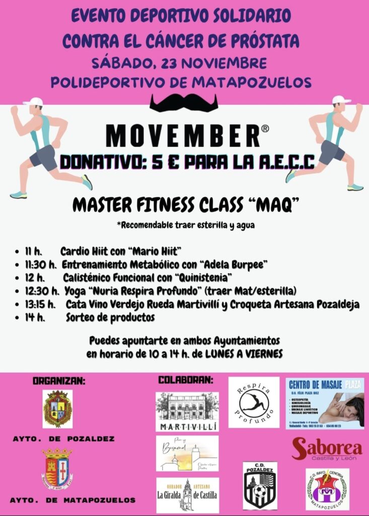 馃摙馃憠Matapozuelos – (POZALDEZ): Movember. Master Fitness Class Maq. Evento Deportivo Solidario contra el C谩ncer de Pr贸stata. S谩bado 23 de Noviembre, 11 h