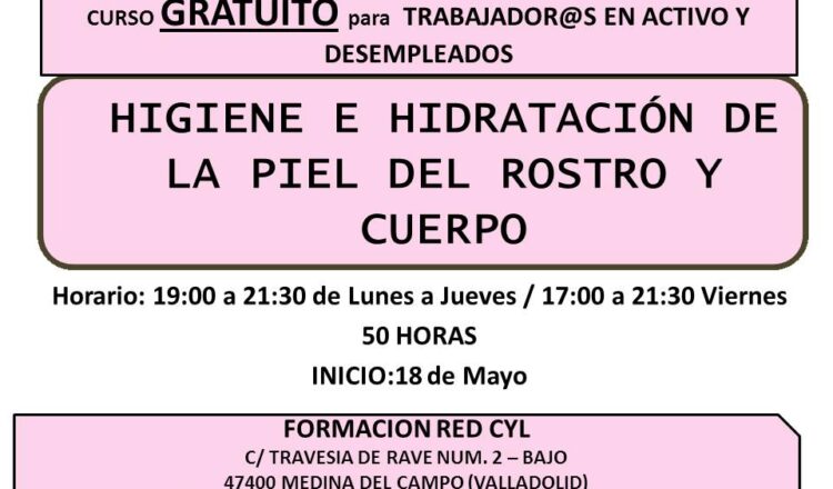 馃摙馃憠MEDINA DEL CAMPO: Curso: Higiene e hidrataci贸n de la piel del rostro y cuerpo. Inicio: 18 de Mayo