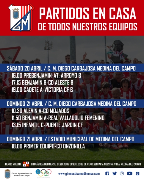 📢👉MEDINA DEL CAMPO: Partidos de Fútbol Gimnástica Medinense. 20 y 21 de Abril