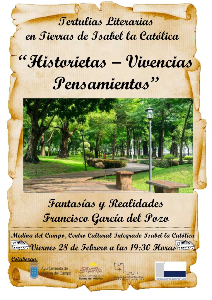 📢👉MEDINA DEL CAMPO: Tertulias Literarias en Tierras de Isabel la Católica. «Historietas – Vivencias – Pensamientos. Fantasías y realidades» de Francisco García del Pozo. Viernes 28 de Febrero, 19:30 h