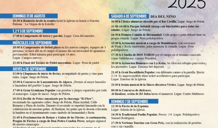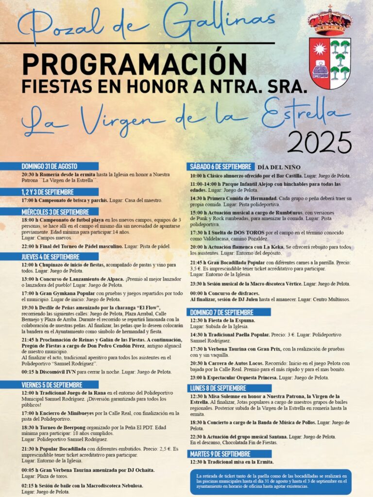 馃摙馃憠POZAL DE GALLINAS: Fiestas Virgen de la Estrella 2025. 31 de Agosto al 9 de Septiembre