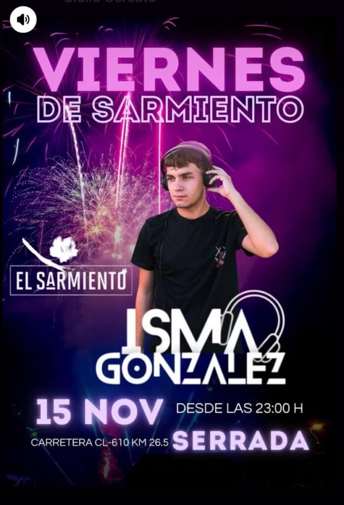 📢👉SERRADA: Viernes de Sarmiento: Dj Isma González. Viernes 15 de Noviembre, 23 h