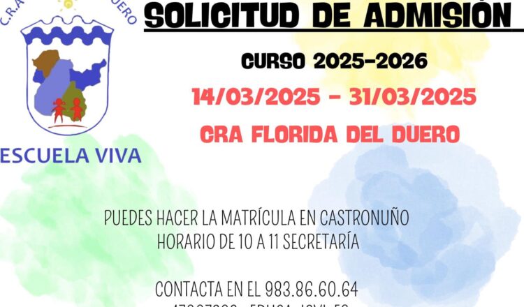 📢👉SIETE IGLESIAS DE TRABANCOS: Solicitud de Admisión CRA Florida del Duero. Admisión: 14 al 31 de Marzo
