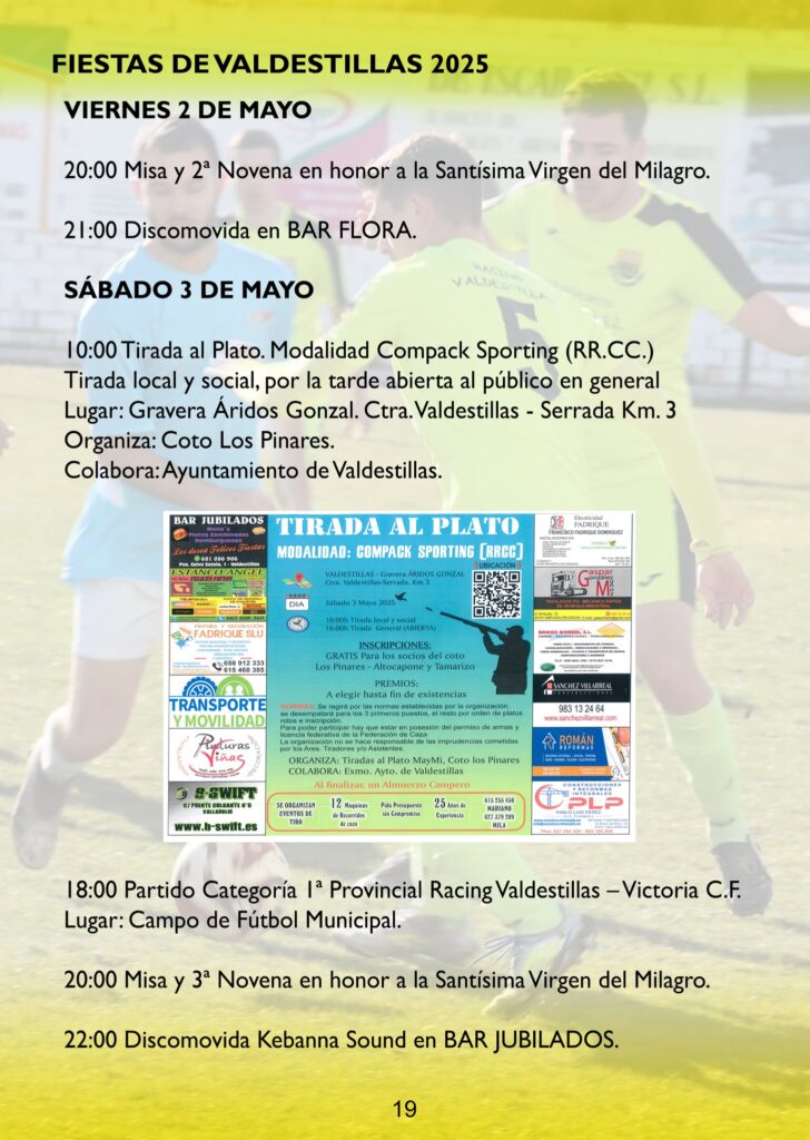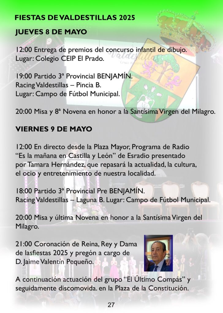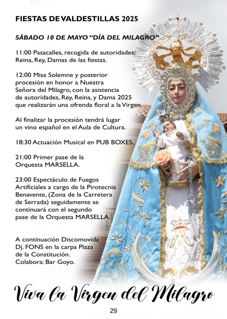 📢👉VALDESTILLAS: Fiestas Patronales Santísima Virgen del Milagro y San Isidro Labrador. 1 al 18 de Mayo