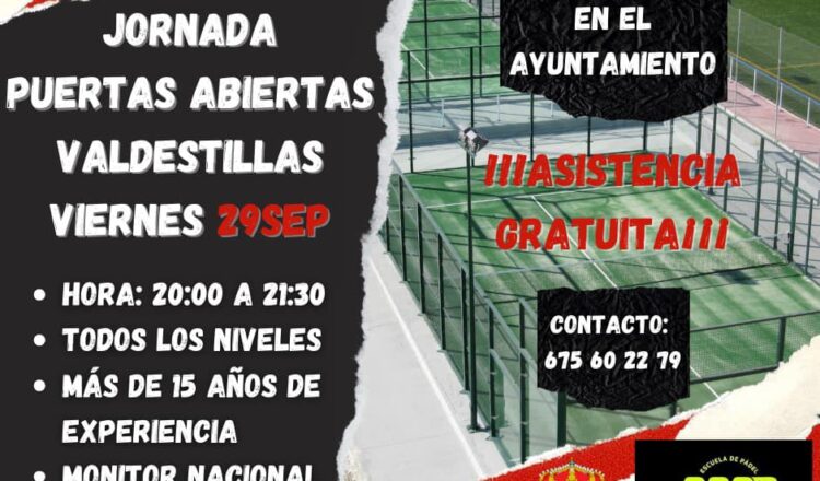 📢👉VALDESTILLAS: Jornada de Puertas abiertas de Pádel. Viernes 29 de Septiembre, 20 h
