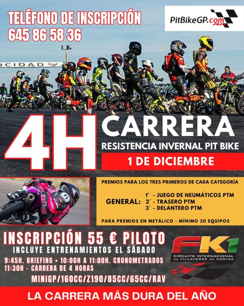 馃摙馃憠VILLAVERDE DE MEDINA: 4 H Carrera Resistencia Invernal Pit Bike. Domingo 1 de Diciembre