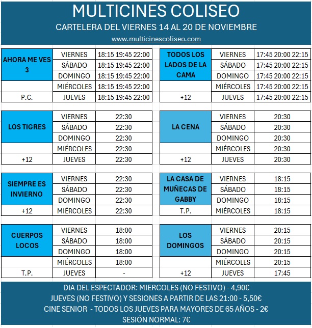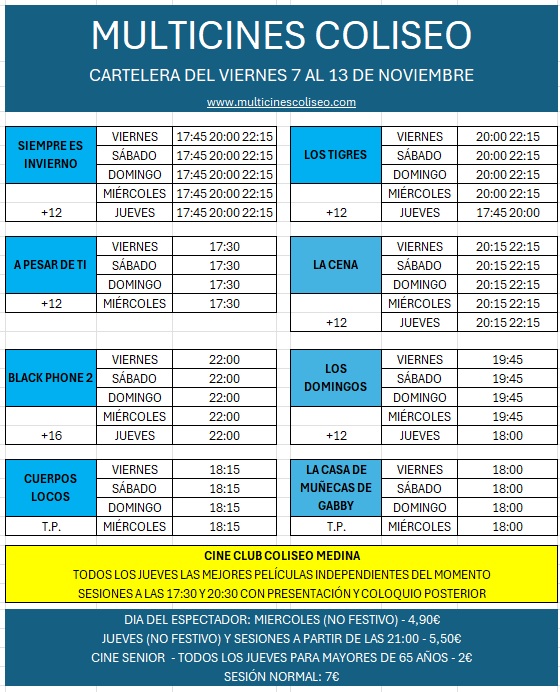 7 de Octubre 2025 a 27 de Enero 2026. Martes