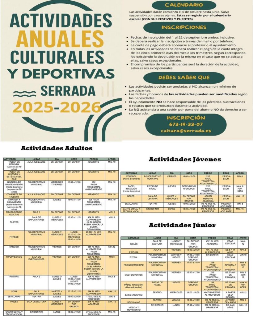 Actividades Calendario 2025 Ayuntamiento de Serrada