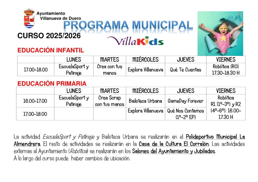 Programa Municipal Villakids. Curso 2025-2026