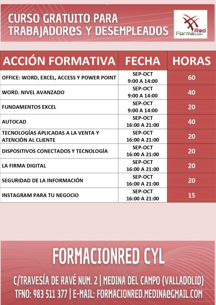 Cursos Septiembre a Octubre Formación Red
