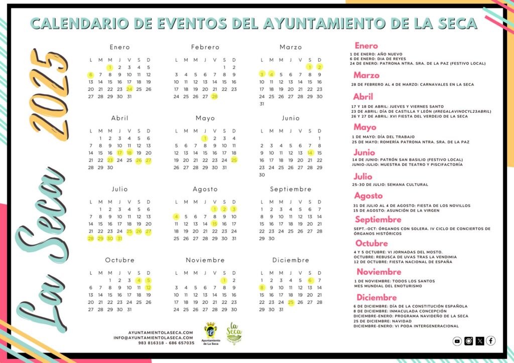 Calendario de Eventos del Ayuntamiento de La Seca 2025