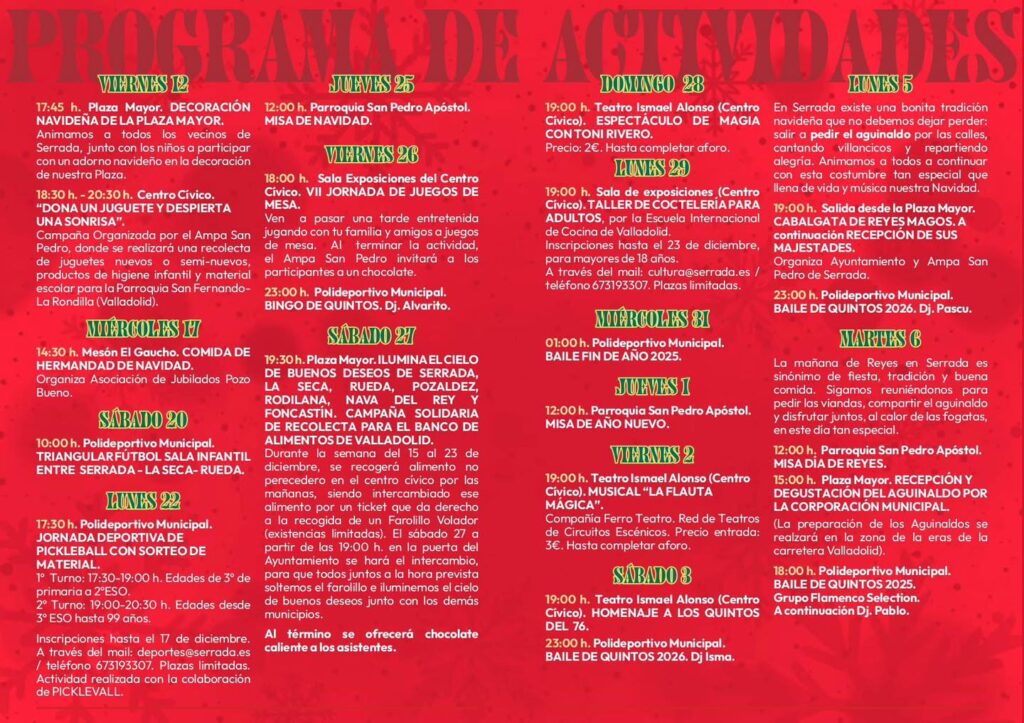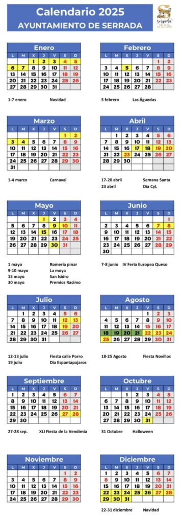Actividades Calendario 2025 Ayuntamiento de Serrada