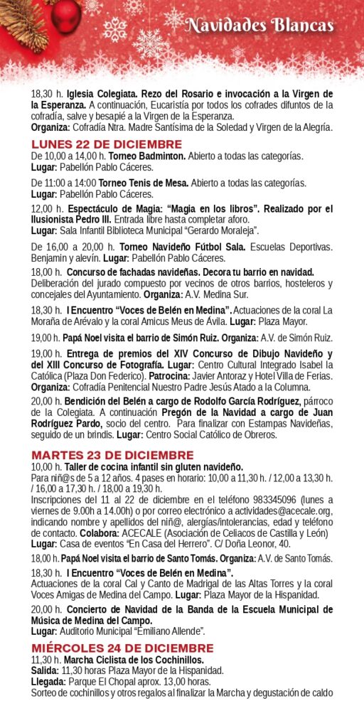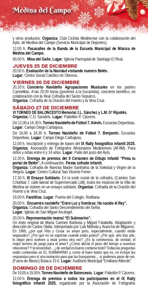 📢👉 Agenda de Eventos Tierras de Medina: 22 al 28 de Diciembre de 2025