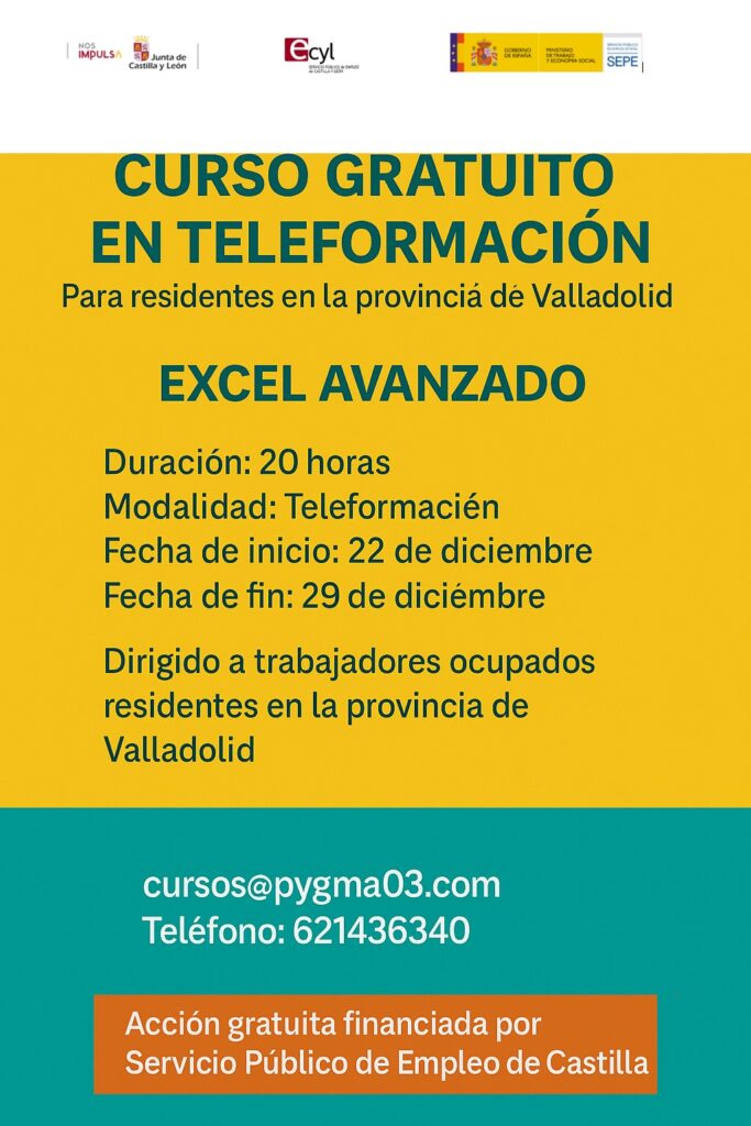 Curso: Excel Avanzado. Gratuito en Teleformación. 20 horas. 22 al 29 de Diciembre
