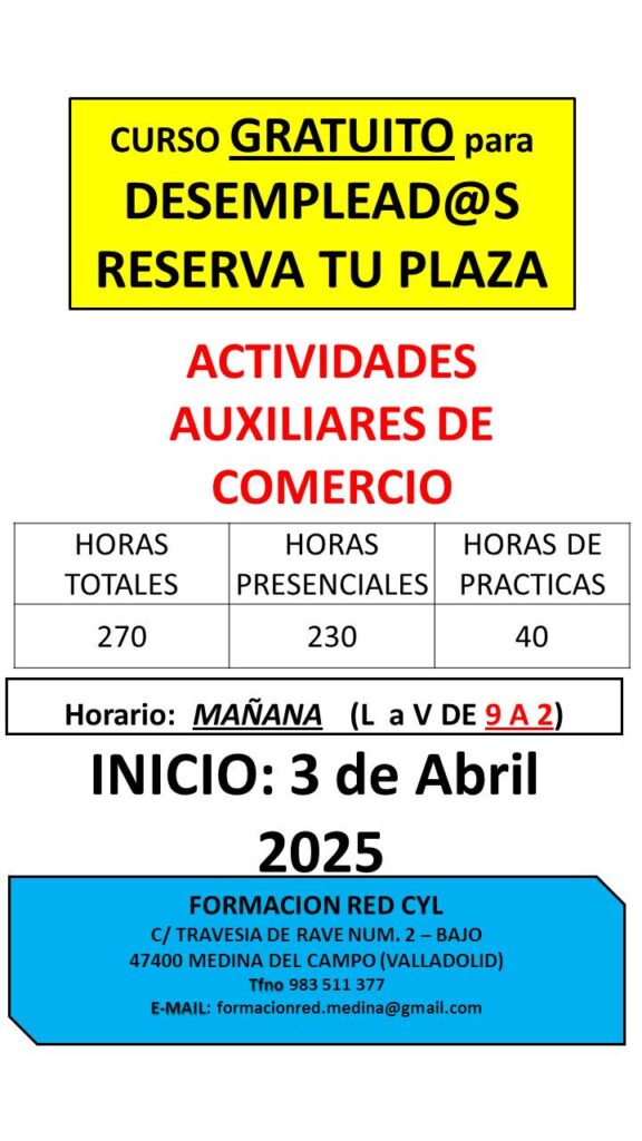 Cursos gratuitos para trabajadores y desempleados en Formación Red Medina del Campo
