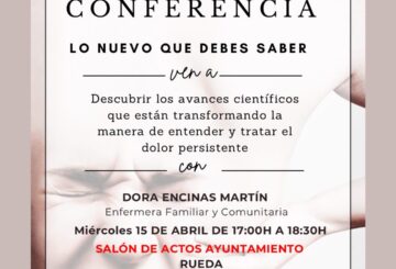 📢👉RUEDA: Conferencia: Dolor crónico y como afrontarlo. Miércoles 15 de Abril, 17 h