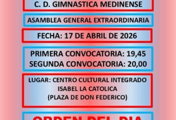📢👉MEDINA DEL CAMPO: Asamblea General Extraordinaria CD Gimnástica Medinense. Viernes 17 de Abril, 19:45 h