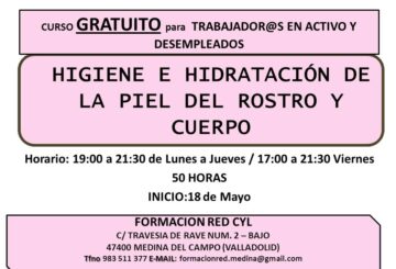 📢👉MEDINA DEL CAMPO: Curso: Higiene e hidratación de la piel del rostro y cuerpo. Inicio: 18 de Mayo