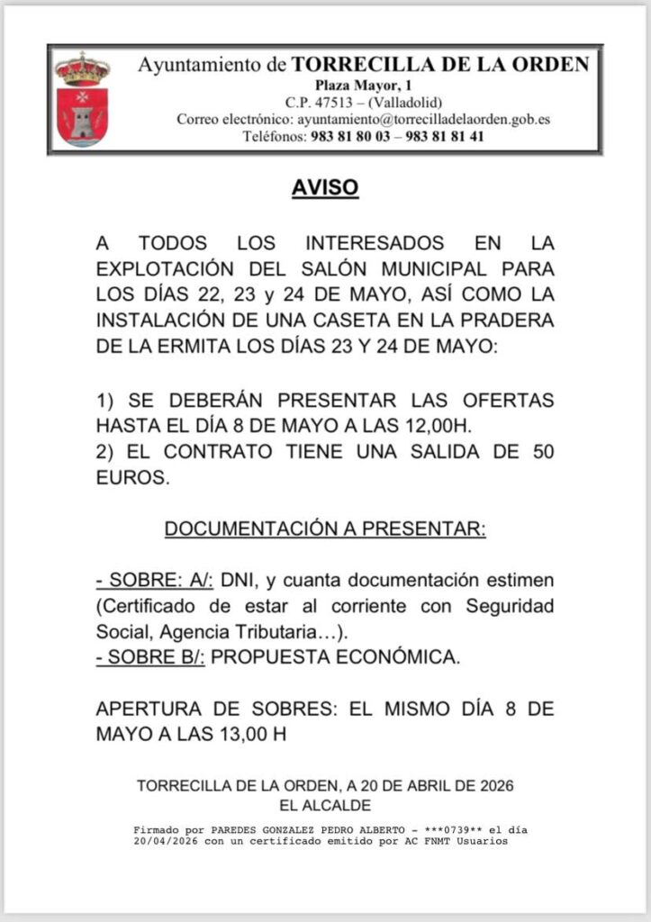 馃摙馃憠TORRECILLA DE LA ORDEN: Explotaci贸n del Sal贸n Municipal y caseta en pradera