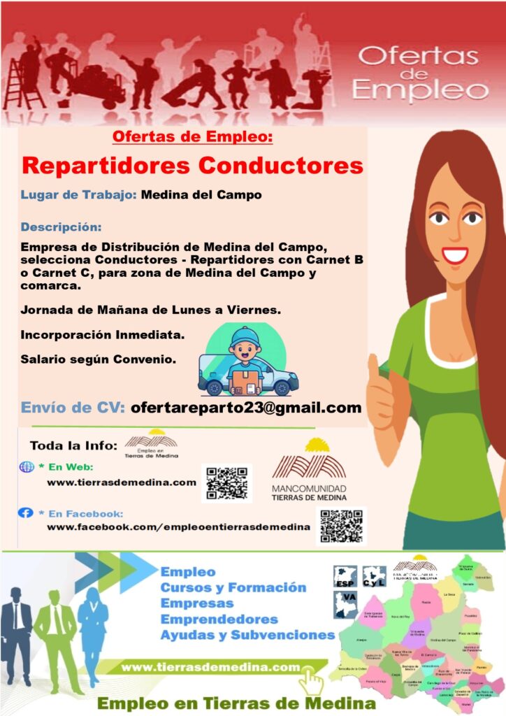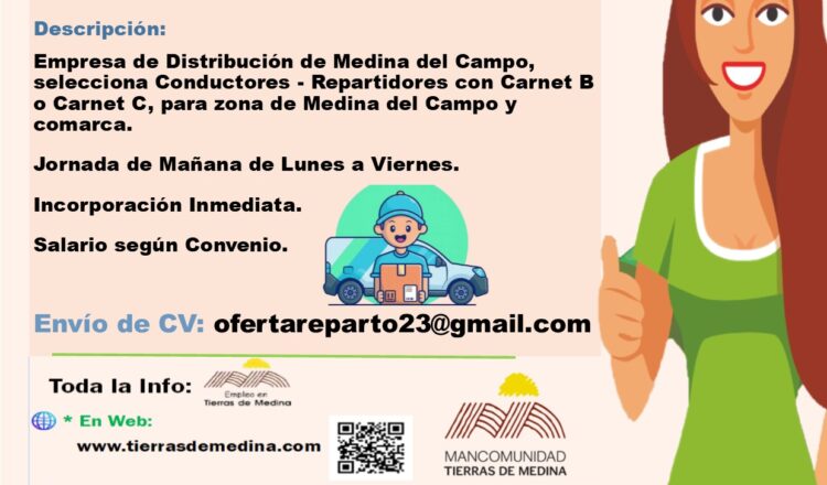 Empresa de Distribución de Medina del Campo, selecciona Conductores – Repartidores con Carnet B o Carnet C, para zona de Medina del Campo y comarca.