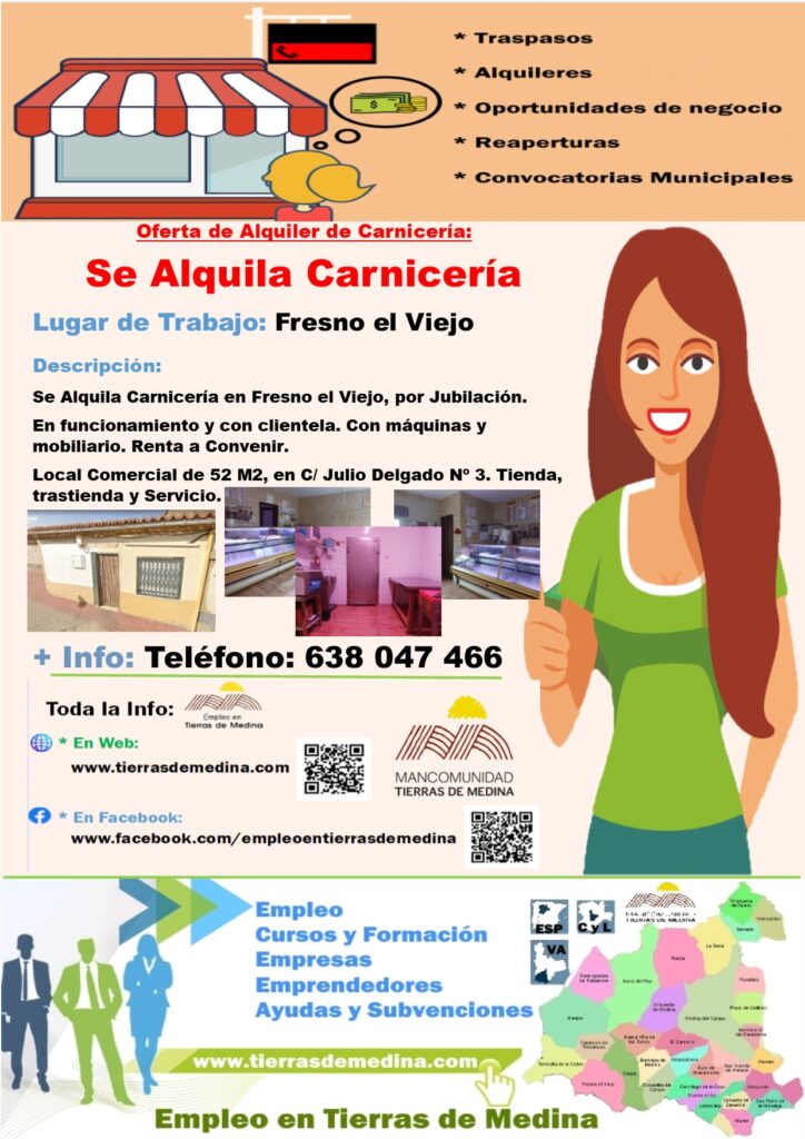 Se Alquila Carnicería en Fresno el Viejo, por Jubilación.