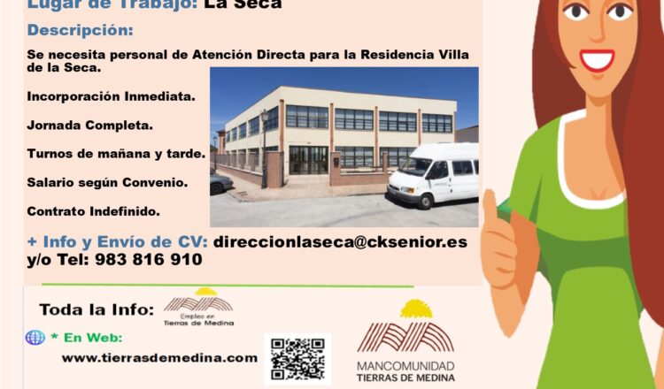 Se necesita personal de Atención Directa para la Residencia Villa de la Seca.