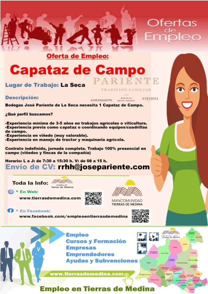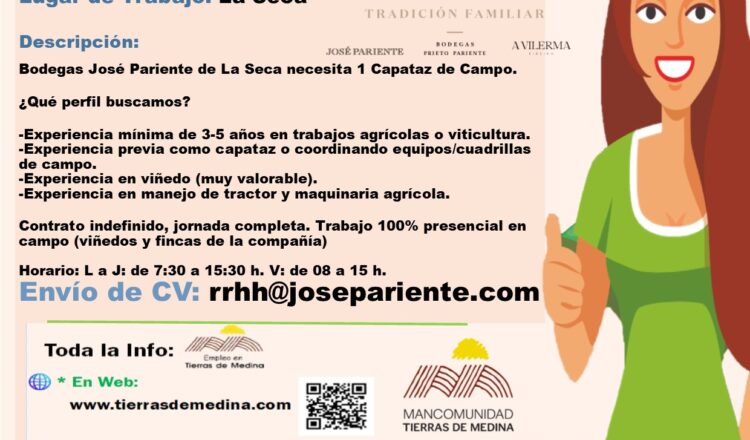 Bodegas José Pariente de La Seca necesita 1 Capataz de Campo.