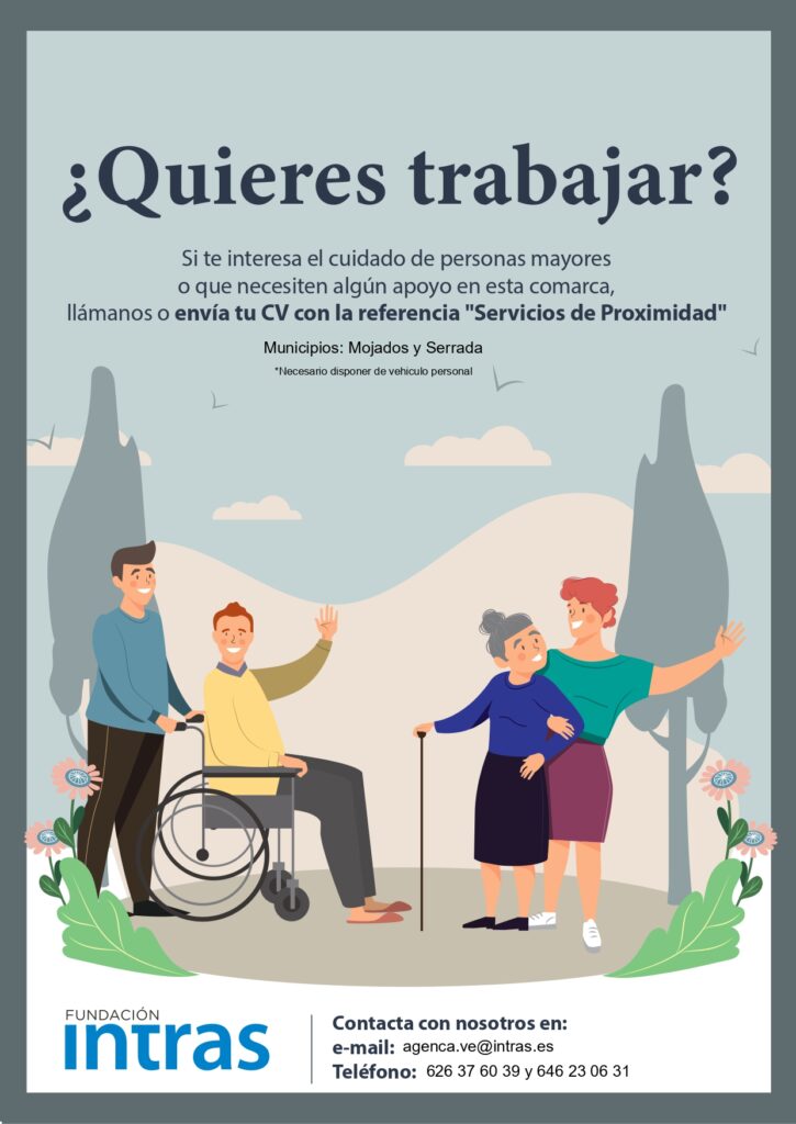 Si te interesa el cuidado de personas mayores o que necesiten algún apoyo en esta comarca, llámanos o envía tu CV con la referencia «Servicios de Proximidad».