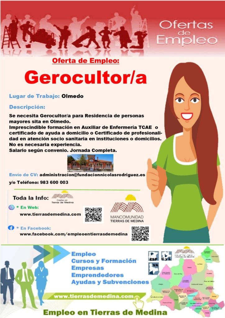 Se necesita Gerocultor/a para Residencia de personas mayores sita en Olmedo.