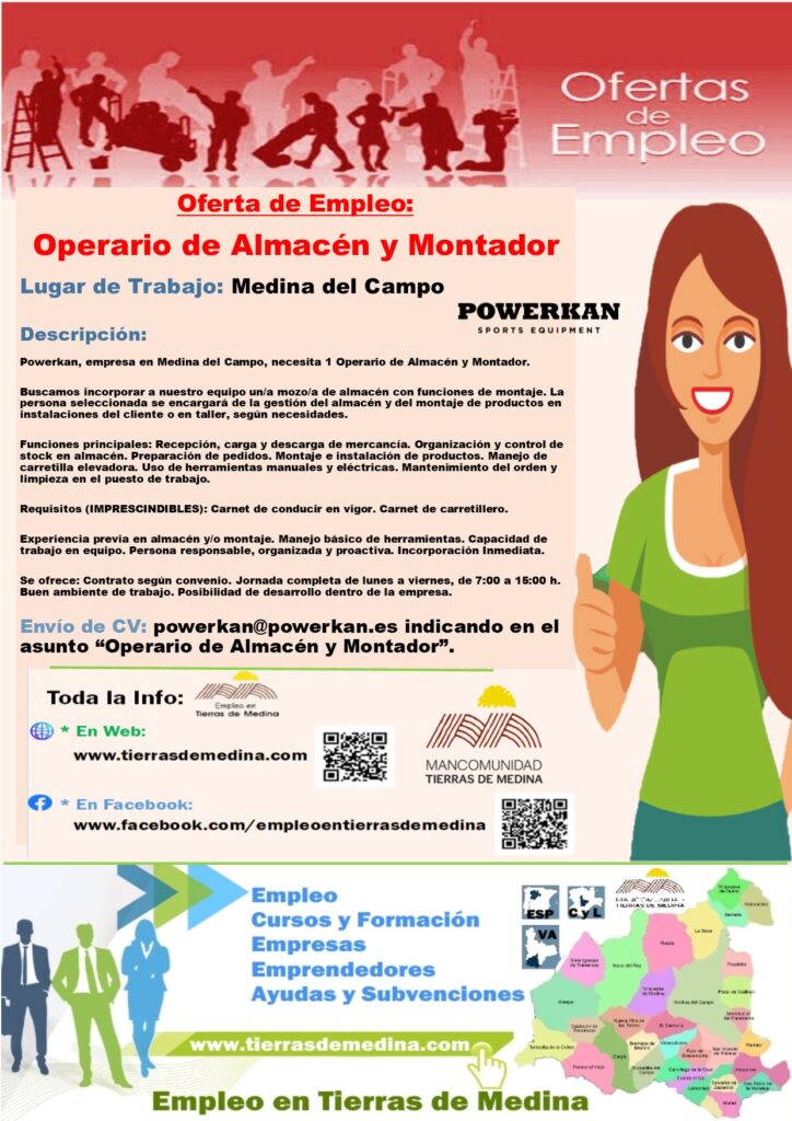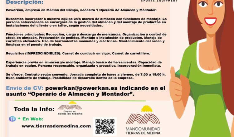 Powerkan, empresa en Medina del Campo, necesita 1 Operario de Almacén y Montador.