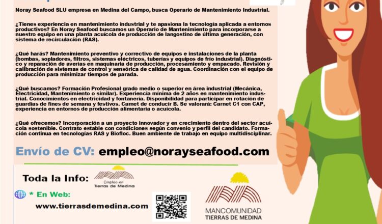 Noray Seafood SLU empresa en Medina del Campo, busca Operario de Mantenimiento Industrial.
