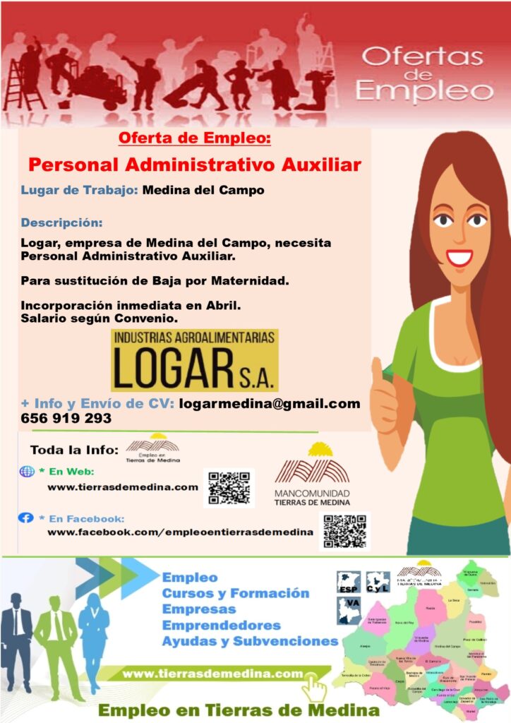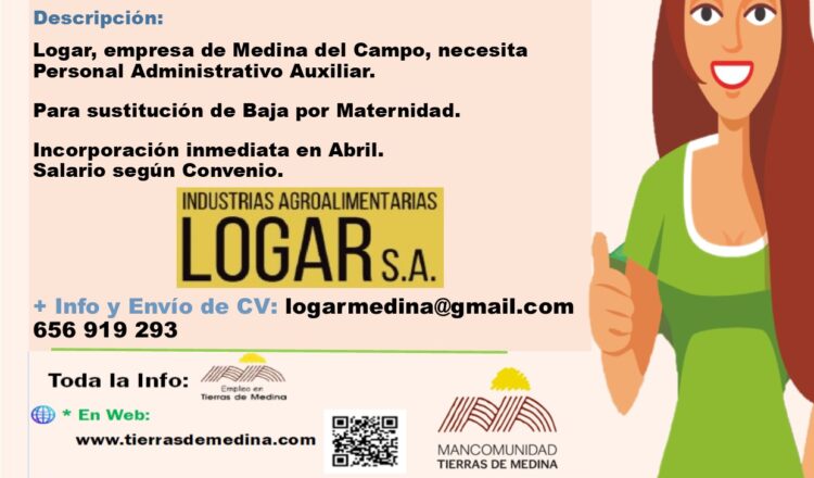 Logar, empresa de Medina del Campo, necesita Personal Administrativo Auxiliar.