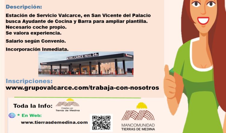 Estación de Servicio Valcarce, en San Vicente del Palacio, busca Ayudante de Cocina y Barra para ampliar plantilla.